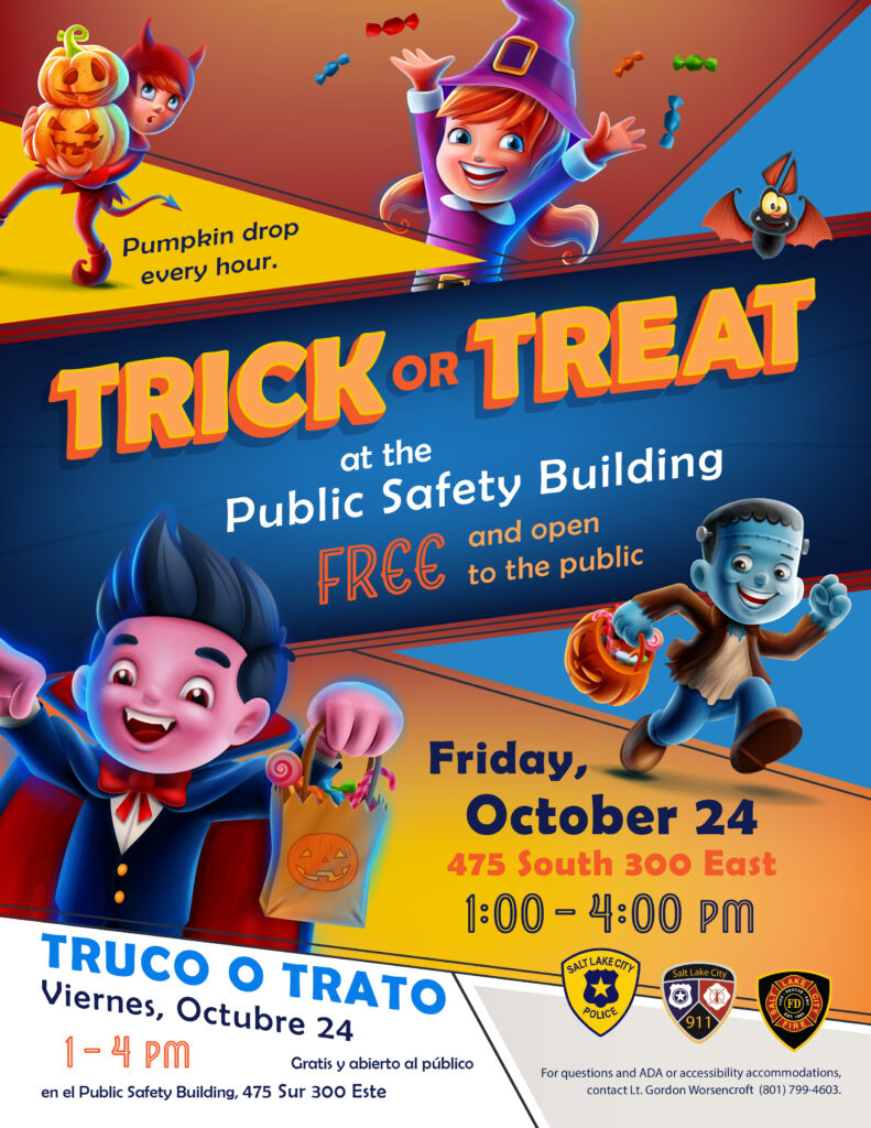 SLCPD Announces Annual Halloween Fun FestSALT LAKE CITY — The Salt Lake City Police Department is excited to announce its annual Halloween Fun Fest, a family-friendly event to bring our community together for an afternoon of safe and spooky fun. The Salt Lake City Police Department’s Halloween Fun Fest will take place on Friday, October 24, 2025, at the Salt Lake City Public Safety Building Plaza, located at 475 South 300 East, from 1:00 p.m. to 4:00 p.m. This event is free and open to all community members and will feature a variety of activities for people of all ages, including public safety booths. The SLCPD’s Halloween Fun Fest is one of our favorite events of the year. This is a chance for our city’s public safety network to engage with our community in a positive and enjoyable way. We look forward to celebrating with you.